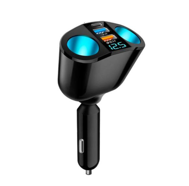 Prémium QC3024 QC3.0+2.4A autós töltő 2 USB porttal + 2 szivargyújtó + PD