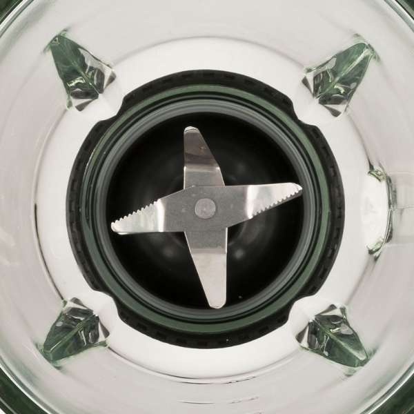 A 1.5 literes üvegkehely mérőskálával van ellátva, amely lehetővé teszi az alapanyagok pontos kimérését. A hat rozsdamentes acél penge garantálja a gyors és egyenletes feldolgozást, akár jeget is törhetsz vele, hogy elkészítsd kedvenc hűsítő italod vagy koktélod.