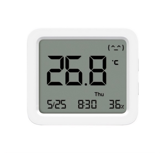 A Xiaomi Smart Temperature and Humidity Monitor 3 nagy, 62,6 x 53,2 mm-es LCD kijelzővel rendelkezik, és szegmensmegjelenítési módszerrel jeleníti meg az adatokat.