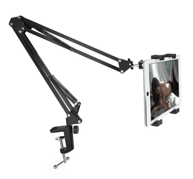 Asztali tartó (asztallapra rögzíthető, állvány, állítható, dönthető, 360°, alumínium, 4.4-7.7") FEKE
