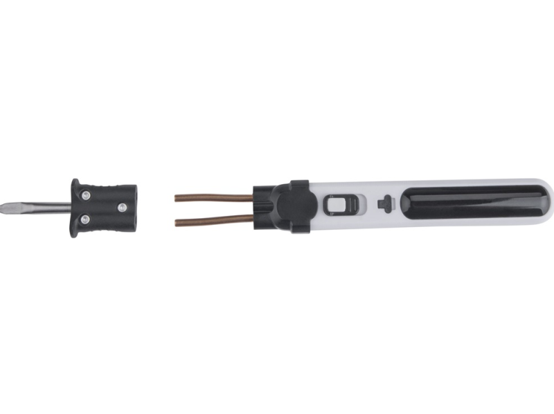 A műanyag hegesztő fejre réz forrasztócsúcsot lehet ráhúzni, amit fémek lágyforrasztásához lehet használni. A készülék ergonomikus kivitelű és kényelmesen fogható, a tömege kicsi, valamint a kis méreteinek köszönhetően nehezen hozzáférhető és szűk helyeken is lehet használni.