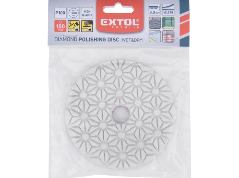 A korongok nagy mennyiségű gyémánt szemcsét tartalmaznak, így nagyon jó csiszolási hatással rendelkeznek; csiszolás/polírozás közben nem kell túl nagy nyomást gyakorolni a korongra.
