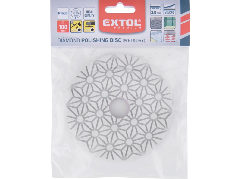 A korongok nagy mennyiségű gyémánt szemcsét tartalmaznak, így nagyon jó csiszolási hatással rendelkeznek; csiszolás/polírozás közben nem kell túl nagy nyomást gyakorolni a korongra.