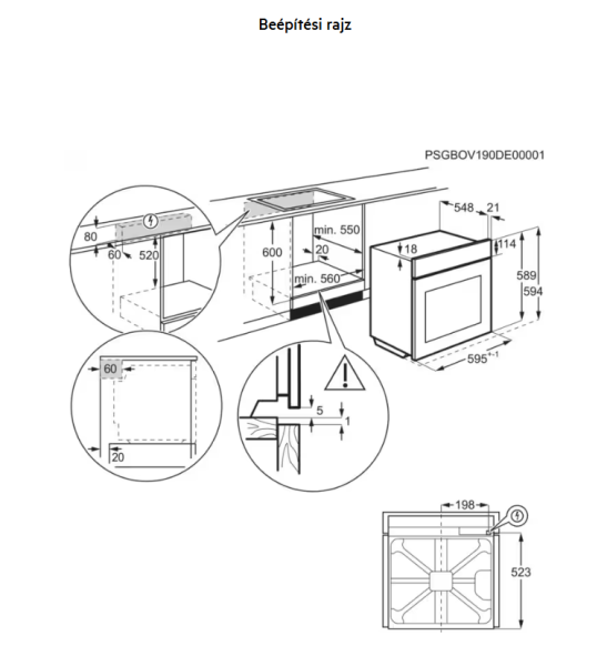 • Beépítési méretek (mag*szél*mély) (mm): 590x560x550