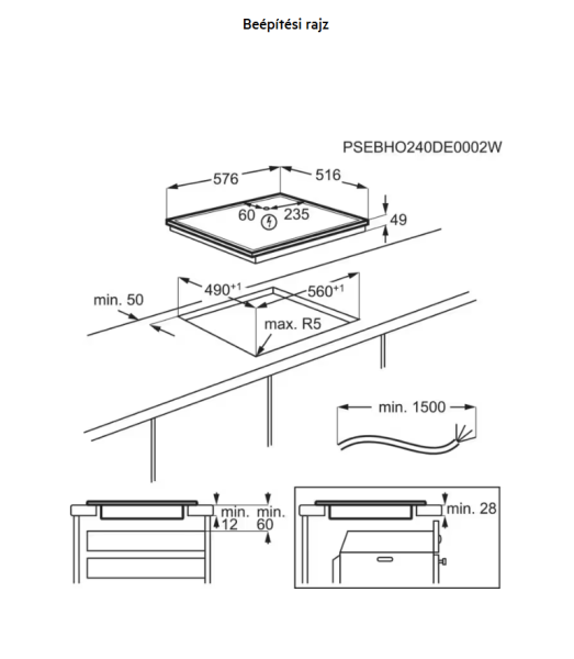• Beépítési méretek (Mag*Szél*Mély, mm): 46x560x490