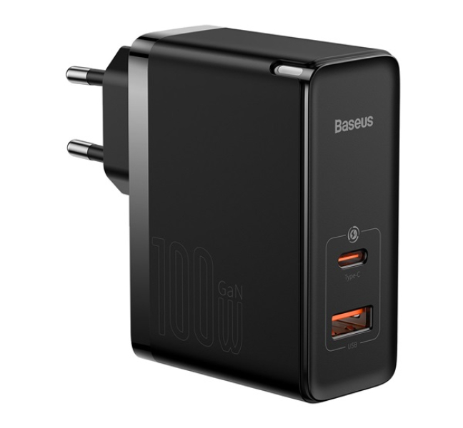 Baseus hálózati töltő USB+Type-C aljzat (100W, GaN5, PD gyorstöltő) FEKETECCGP090201