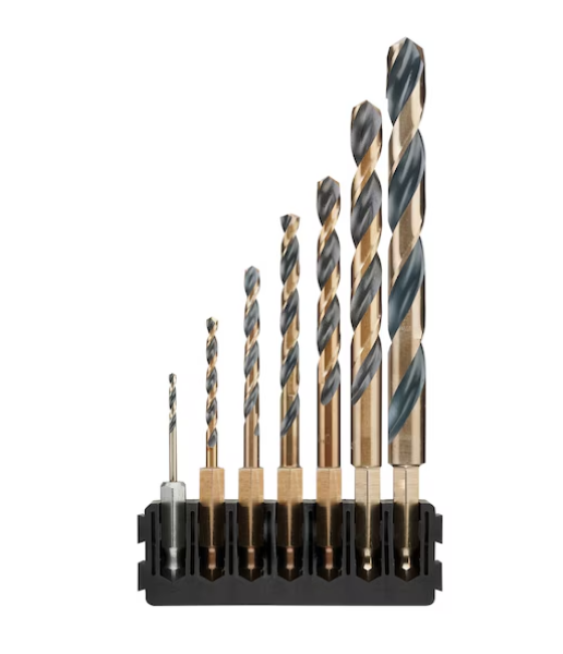 7 db hegytartó + fémfúró hatszögletű szárral 2 mm, 3 mm, 4 mm, 5 mm, 6 mm, 8 mm, 10 mm