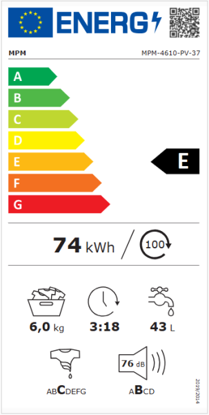 • Energiafogyasztási költség 100 ciklusonként: 74 kWh = 56,98 PLNAz