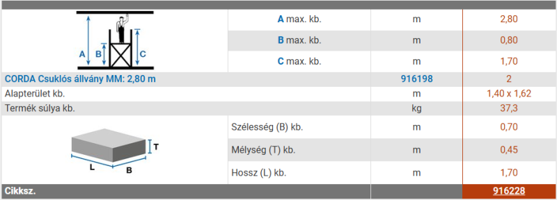 • Kompakt dobogós állvány maximum kb. 2,80 m munkamagassággal.