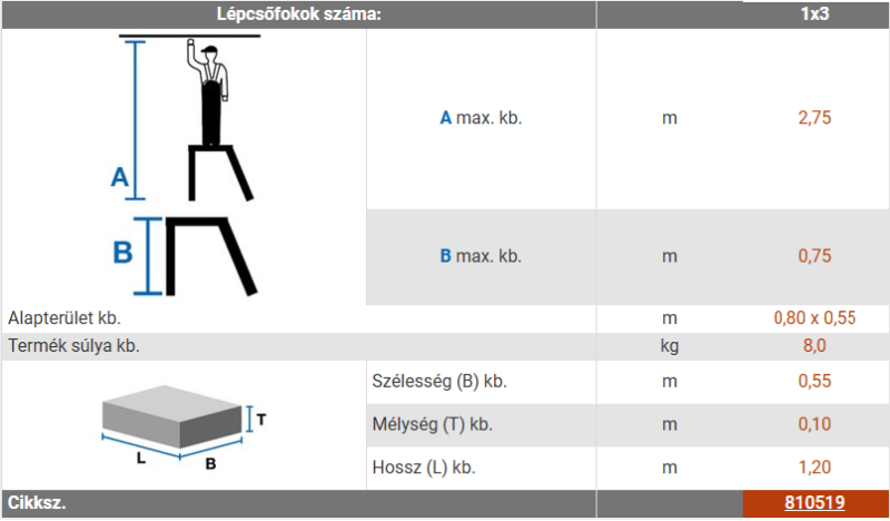 • Utolsó fok magassága: 0,75 m