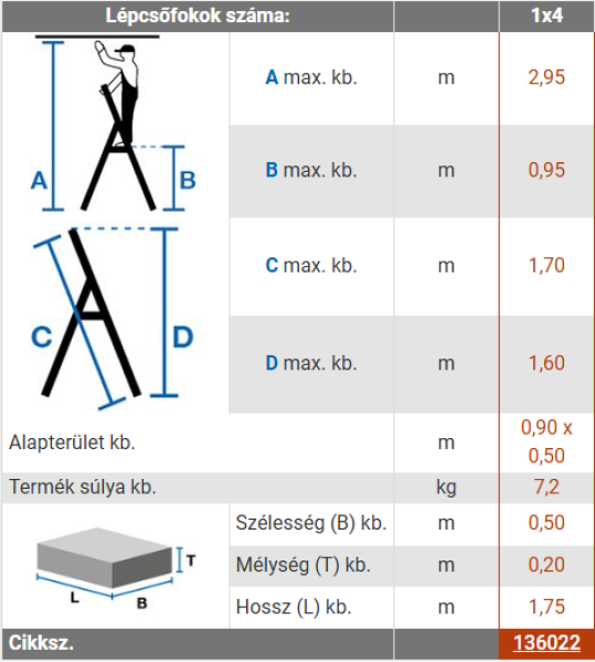 • Utolsó fok magassága: 0,95 m