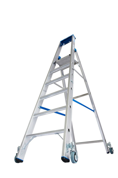 • Robusztus alumínium állólétra multifunkcionális tálcával és kerekekkel mobil használathoz