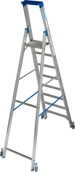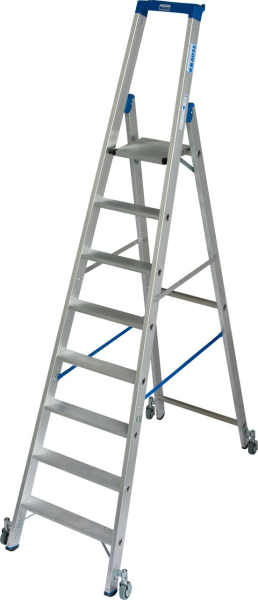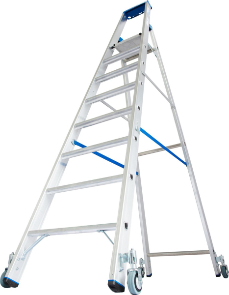 • Robusztus alumínium állólétra multifunkcionális tálcával és kerekekkel mobil használathoz