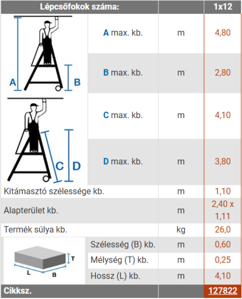 • Utolsó fok magassága: 2,80 m