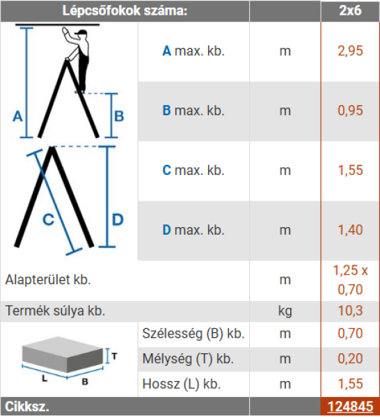 • Utolsó fok magassága: 0,95 m