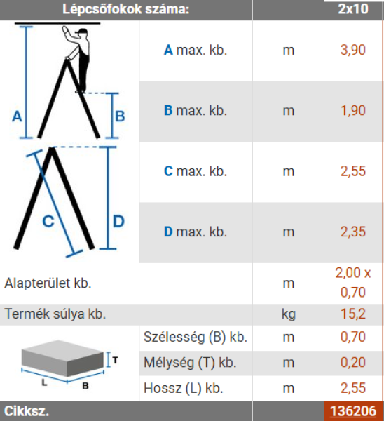 • Utolsó fok magassága: 1,90 m