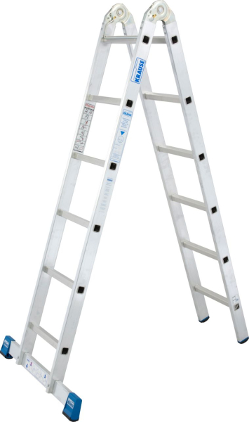 • Professzionális, megerősített létrafokos csuklós alumínium létra, amely álló- és támasztólétraként is használható.