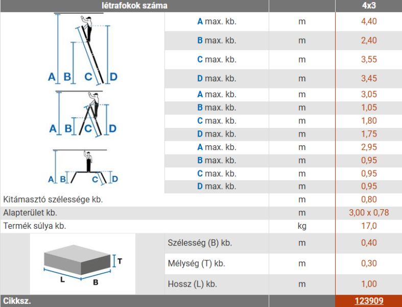 • Univerzális alumínium csuklós létra univerzálisan használható támasztó- és állólétraként, valamint munkaállványként (4 x 3 létrafok).