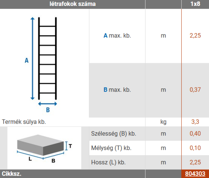 A létra pontos méretei a mellékelt képen!
