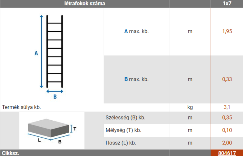 A létra pontos méretei a mellékelt képen!