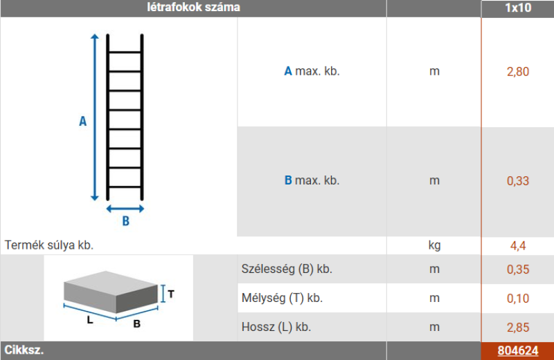 A létra pontos méretei a mellékelt képen!