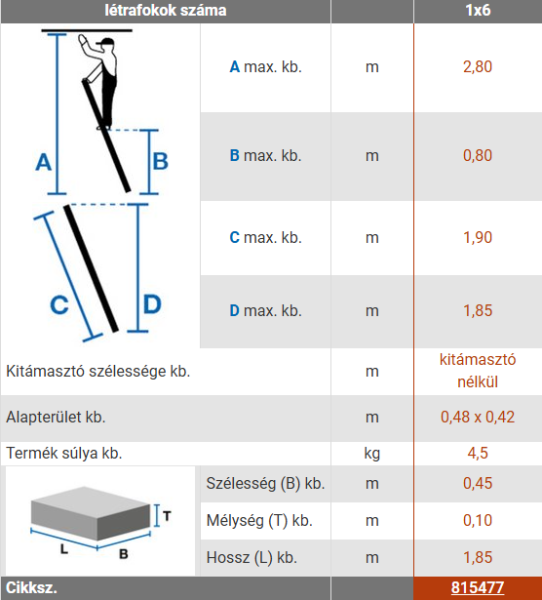 A létra pontos méretei a mellékelt képen!