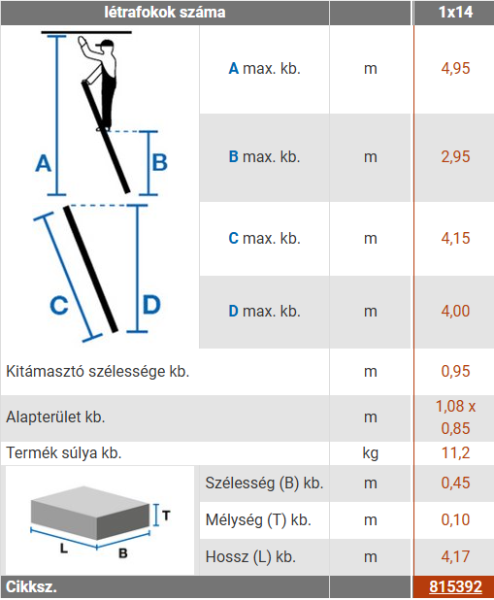 • Utolsó fok magassága: 2,95 m