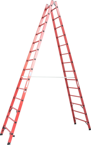 Két oldalon járható létrafokos létra üvegszál erősítésű műanyag fokokkal és szárakkal.