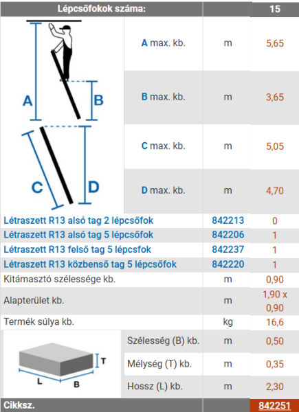 • Utolsó fok magassága: 3,65 m