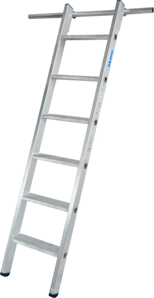 Lépcsőfokos alumínium polclétra csőből készült (Ø 30 mm) sínszerkezetekhez használható beakasztóhoroggal