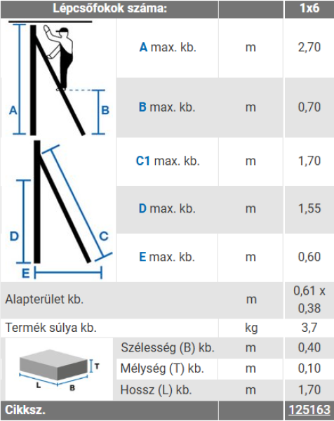 • Utolsó fok magassága: 0,70 m