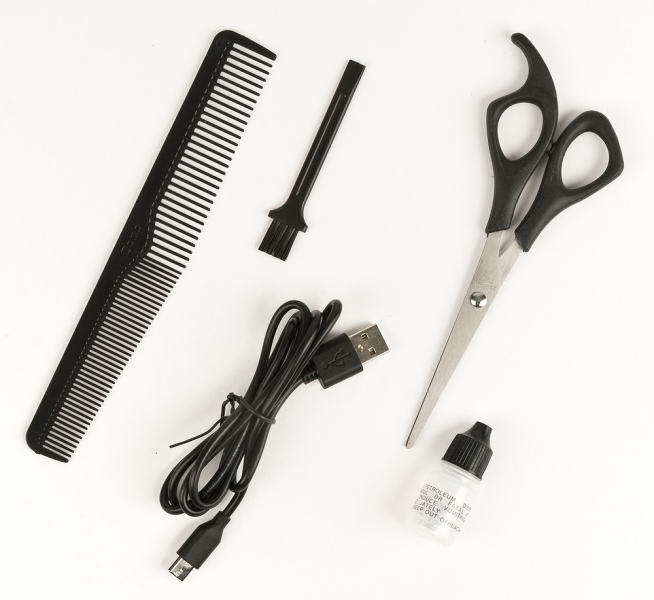 • Tartozékok: 4 fésű, olló, fésű, USB-kábel, olaj