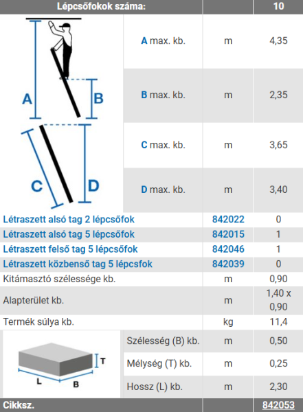 A létra pontos méretei a mellékelt képen!