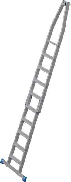 A létra felső tagja fali vezetőgörgőkkel és kopásálló, puha gumi anyagú érintkező blokkal, ékkivágással, mely házsarkakra és ablakprofilokra helyezhető