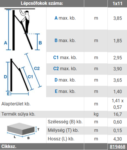 • Utolsó fok magassága: 1,85 m