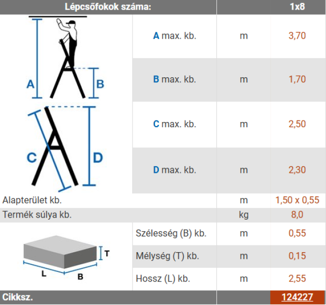 • Utolsó fok magassága: 1,70 m