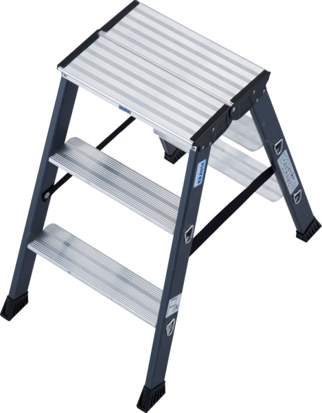 A SePro D a MONTO-program csúcsminőségű alumínium két oldalon járható állólétrája – tiszta, kényelmes és hosszú élettartamú.