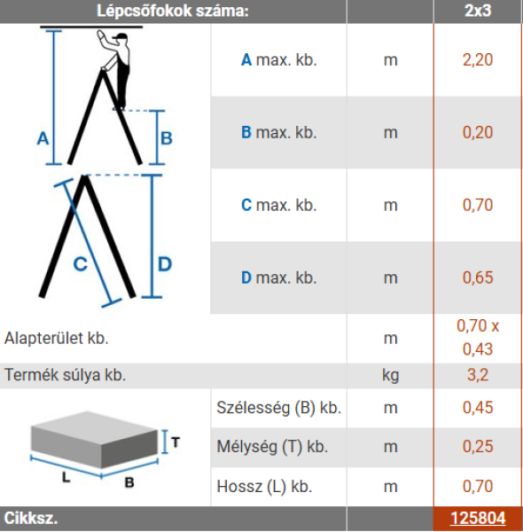 A létra pontos méretei a mellékelt képen!