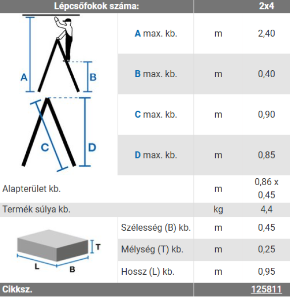 • Utolsó fok magassága: 0,40 m