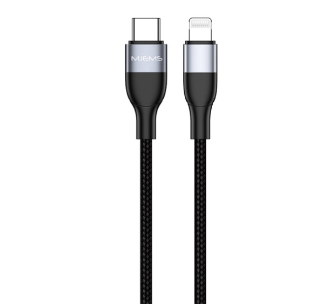 Usams MJEMS adatkábel (Type-C - lightning, PD gyorstöltő, 120cm, cipőfűző) FEKETE
