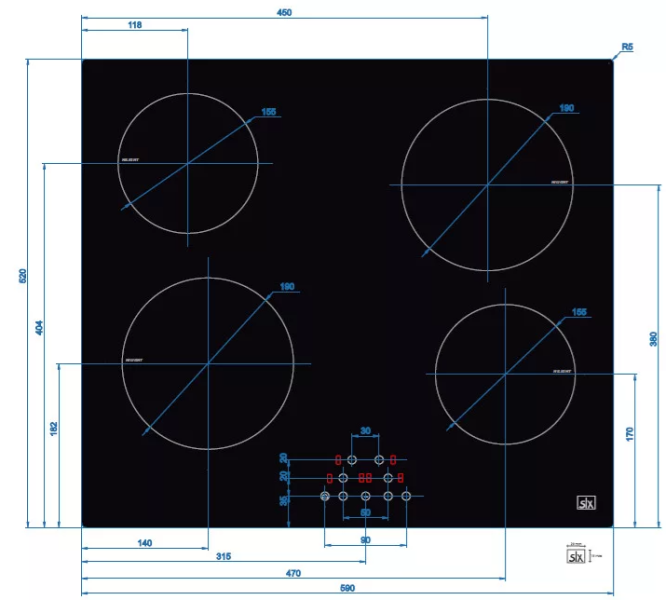SLX 5VF-4S beépíthető kerámia főzőlap