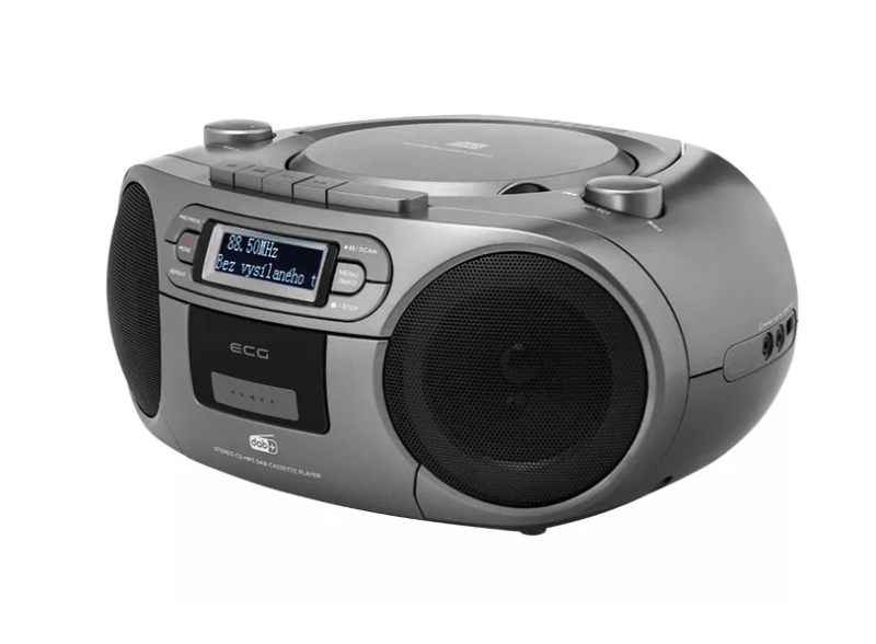LCD kijelző, amely egyértelműen mutatja az aktuális időt és dátumot, valamint minden fontos információt a rádió működéséről és a lejátszott tartalomról (cseh nyelven)