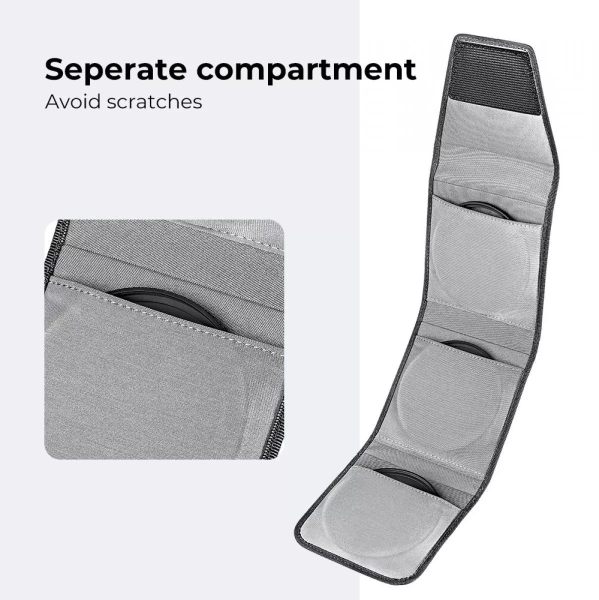 • A K&F Concept szűrőtartó tok egy praktikus és tartós kiegészítő, amely lehetővé teszi, hogy három különböző méretű szűrőt (67mm-től 82mm-ig) biztonságosan tároljon és szállítson.