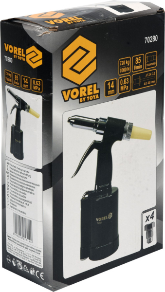 A 4 cserélhető vég lehetővé teszi a különböző átmérőjű szegecsekkel való munkát.