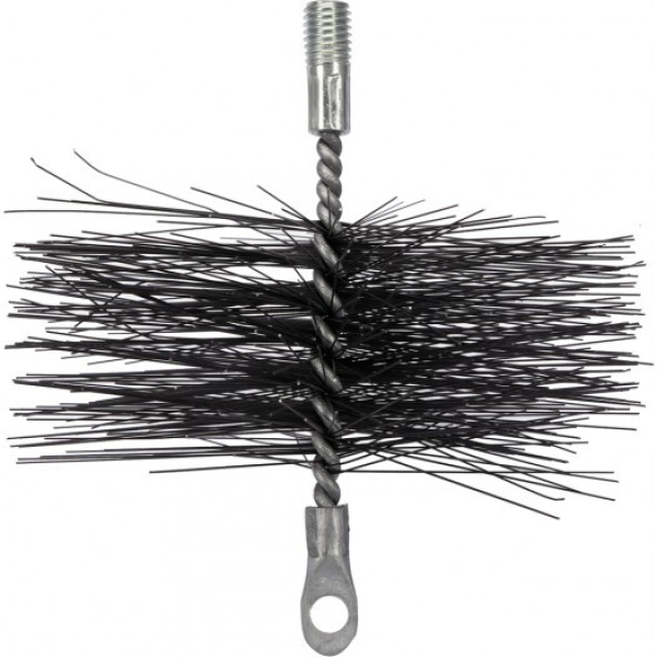 M12-es külső menettel kémény tisztítórúd rögzítéséhez, illetve speciális fül a kefe rögzítéséhez.