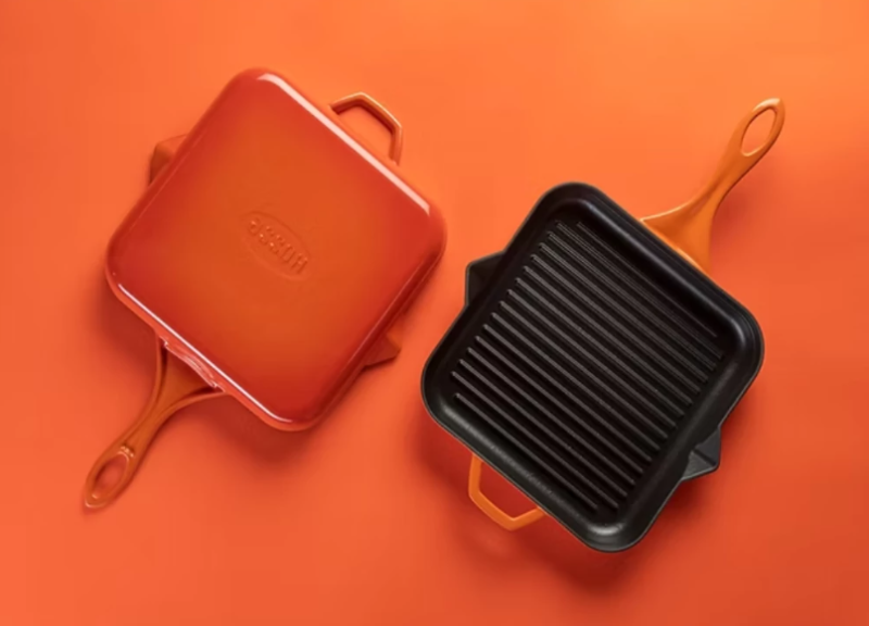 Hósse zománcozott öntöttvas grill serpenyő 28cmx28cm, narancssárga (HOS-KIEG-011)