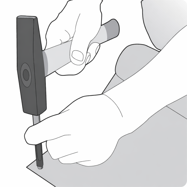 Kalapáccsal ütve az anyagra felvitt kihegyezett él lyukat vág.