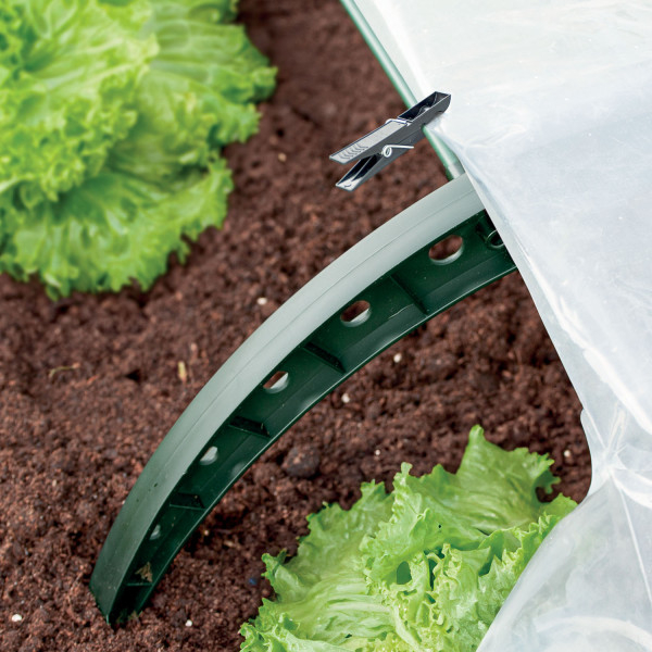 • Az íves vázszerkezetre feszített, átlátszó fólia optimális mikroklímát biztosít a növények számára, miközben védi őket a hidegtől, széltől, esőtől és kártevőktől.