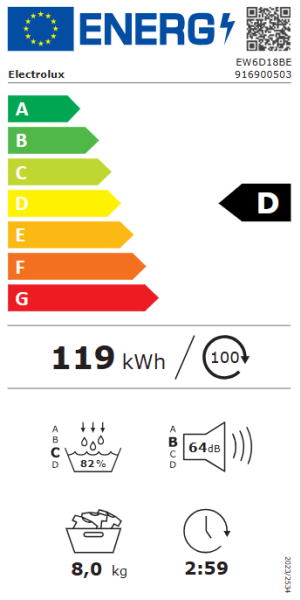 Súlyozott energiafogyasztás / 100 ciklus (kWh): 119