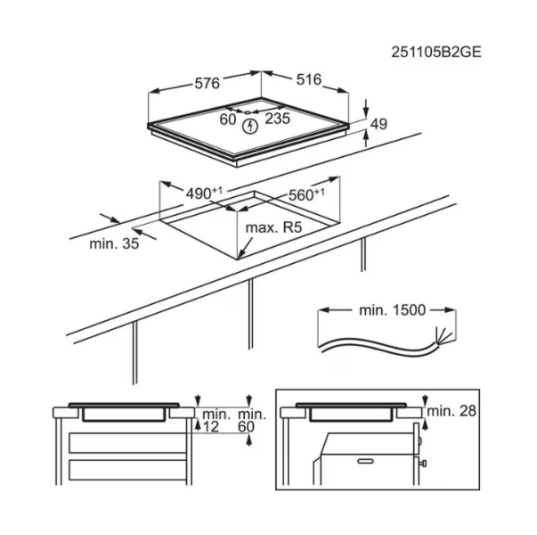 Beépítési méretek (Mag*Szél*Mély, mm): 49x560x490